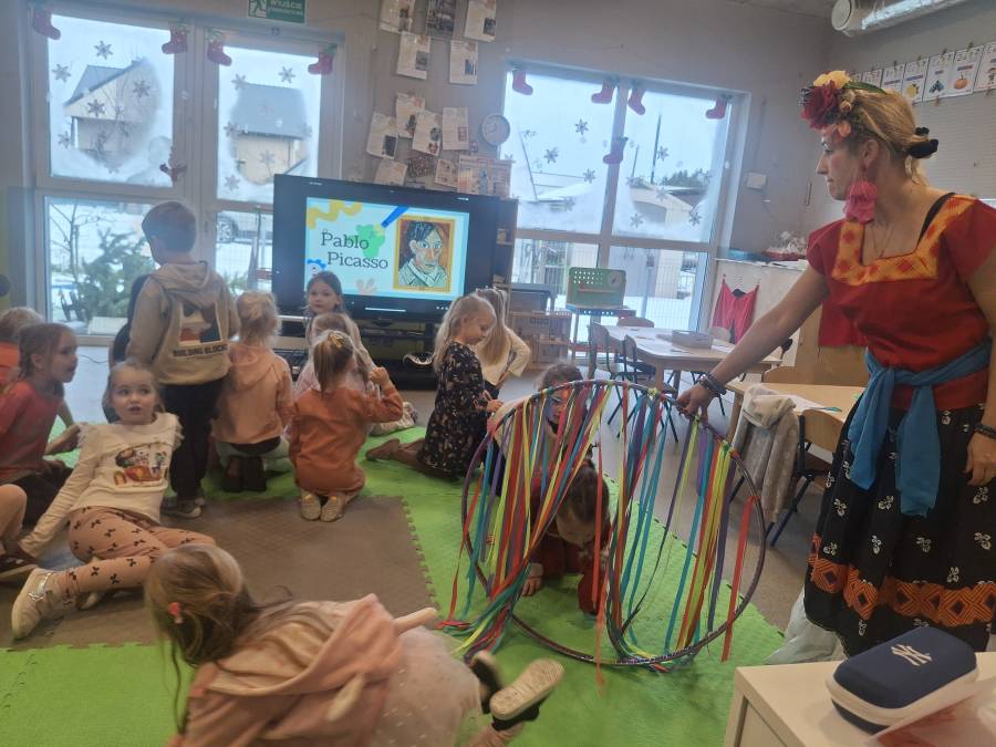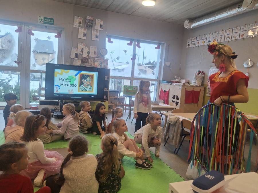 Warsztaty plastyczne to podróże w czasie z Fridą Kohlo. Tym razem dzieci przeniosły się do czasów Pablo Picasso.