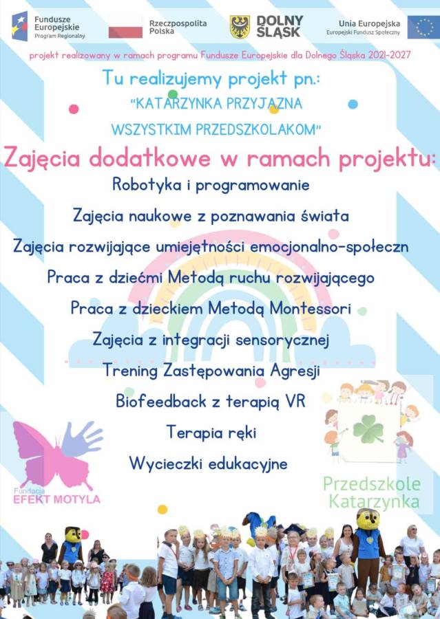 Zajęcia te są w Naszym przedszkolu finansowane z funduszu Unii Europejskiej na lata 2024-2027.